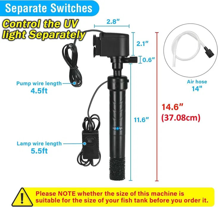 🔌 Comenzi separate pentru pompă și lumină UV:
