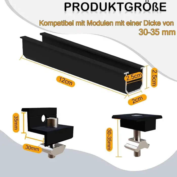 Compatibilitate universală: cleme reglabile pentru module fotovoltaice cu grosime între 30–35 mm