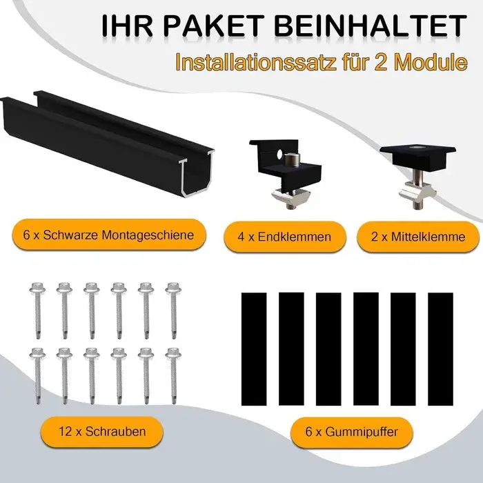 Set montare panouri solare Sorlpv – 2 module | Șină neagră 12 cm + cleme reglabile