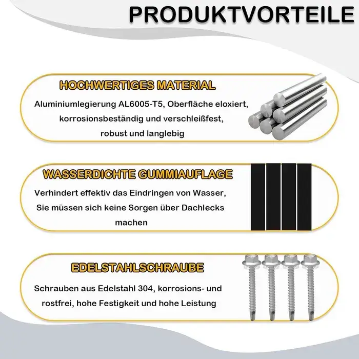 Material durabil: aluminiu AL6005-T5 + șuruburi inox 304 – rezistent la coroziune și intemperii